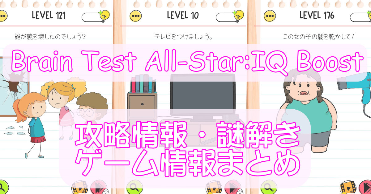 スマートフォン向け(iOS/Android対応)謎解き・パズル系ゲームアプリ「Brain Test All-Star:IQ Boost」(ブレインテスト オールスター:IQゲーム)の、攻略情報と謎解きの答えといったゲーム情報・攻略情報まとめページです。