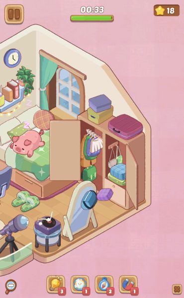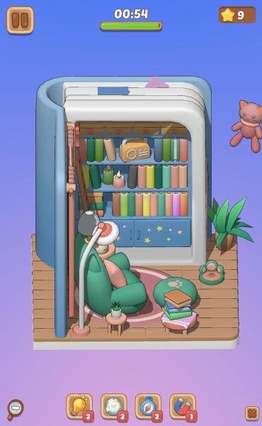 このレベルはお部屋のサイズがやや大きくなっており、左右にスワイプして画面を動かさないと全ての場所を確認できません。