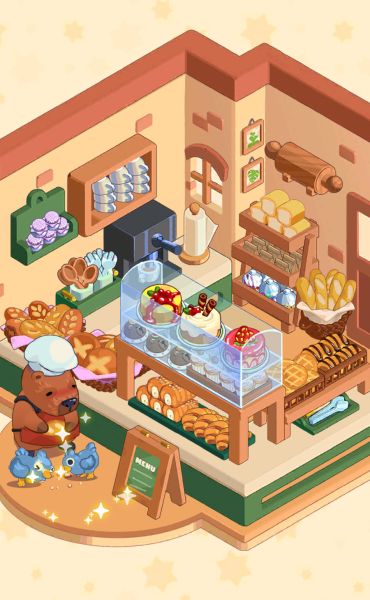 パン屋さんのカウンターやパンなどを置いていきましょう。