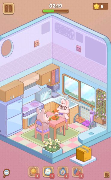 やることはどのレベルも同じで、箱をタップして出てきた家具などを、お部屋の特定の場所に置いていくだけとなっています。
