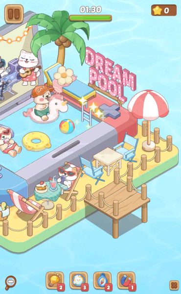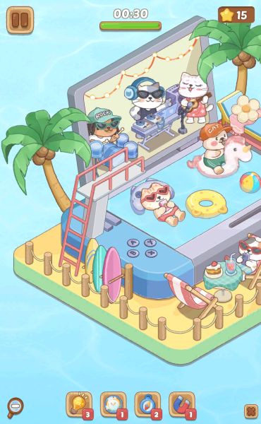 ビーチっぽい部分には座席を、画面のプール部分は浮き輪などを置いていきます。