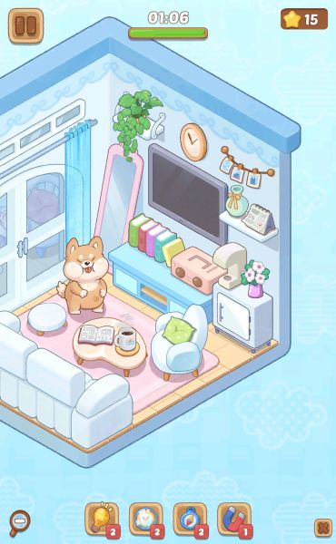最初のレベルなので、置くべき家具の数は多くなく簡単です。