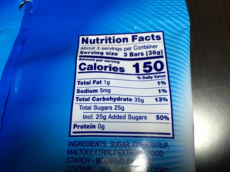 噛んでいても歯にくっつきにくいという、アメリカのお菓子ではちょっと珍しいタイプの食感でした。