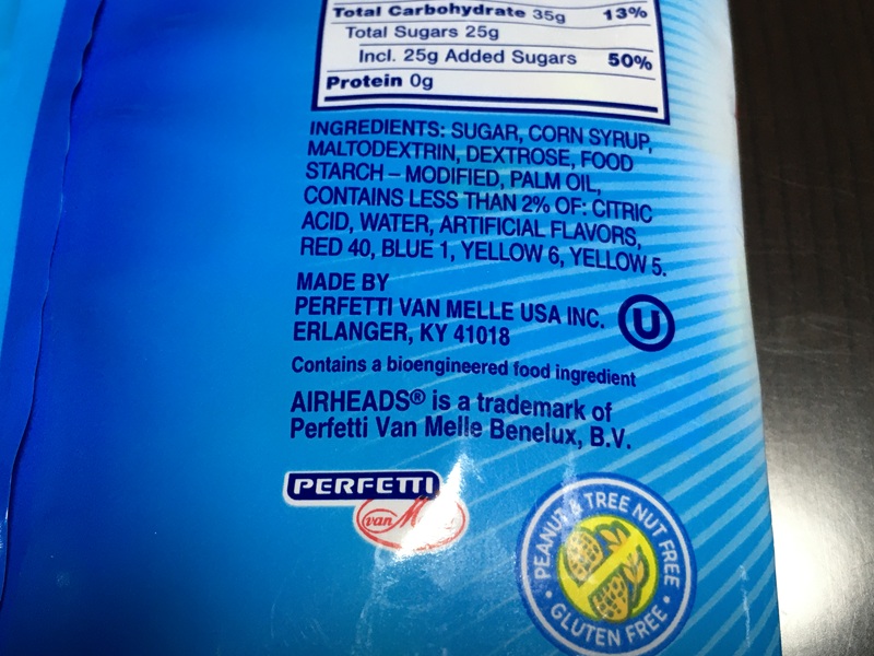 この平らなバータイプの他に、酸っぱい粉のついたベルトグミの「Airheads Xtremes」という商品もありました。