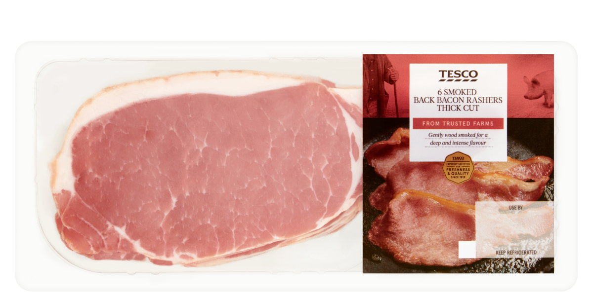 イギリスで食べられているベーコンの主流はバックベーコンで、アメリカ式のストリーキーベーコン(縞々ベーコン/ばら肉ベーコン)も売っています。