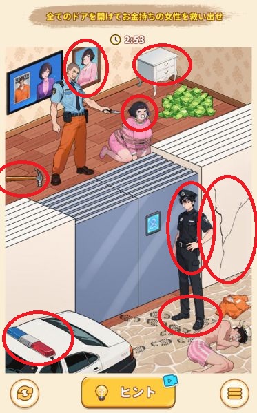 - 警察官の足を木の扉の方に(上に?)スワイプする