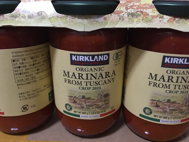 - Kirkland Signature Organic Marinara 680g x3本:1388円(税込)/2025年7月購入時