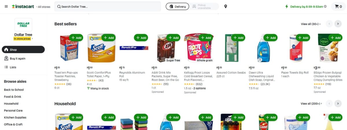 Dollar Treeのもう一つの買い方としては、「Instacart」というネットスーパーやUber Eatsなどの食料品版のようなサービスを使い、転送サービス会社の倉庫宛に届けてもらう方法があります。