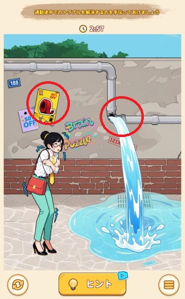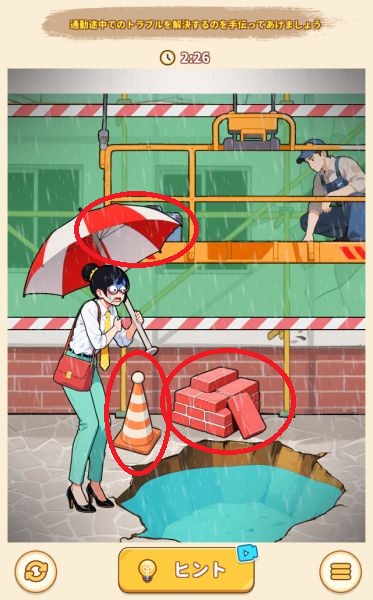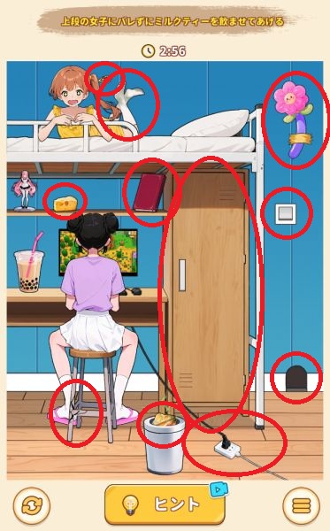 - 上の女の子の髪飾りを右上の風船に使って割る