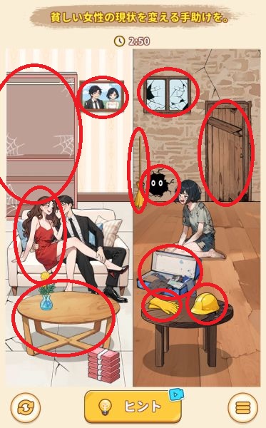 - 左下のお金を左画面の男性の左にいる女性に使う