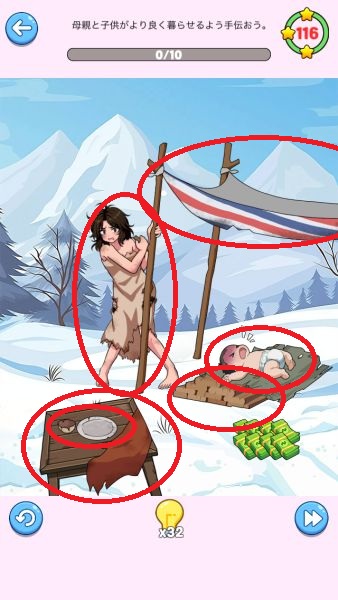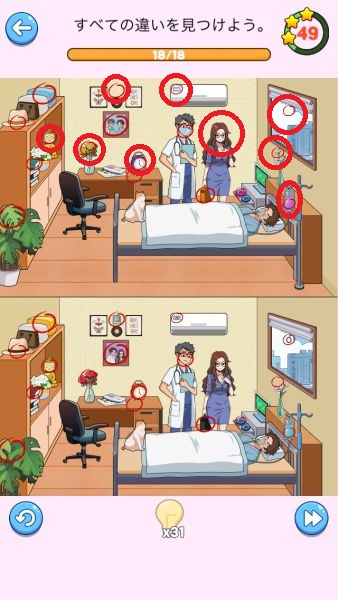 18ヶ所ある間違いを全て見つければレベルクリアです。