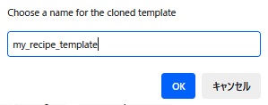 [Choose a name for the cloned template]というメッセージが表示されるので、アルファベットなど(日本語を入れない)でテンプレート名を入力してOKで進みます。