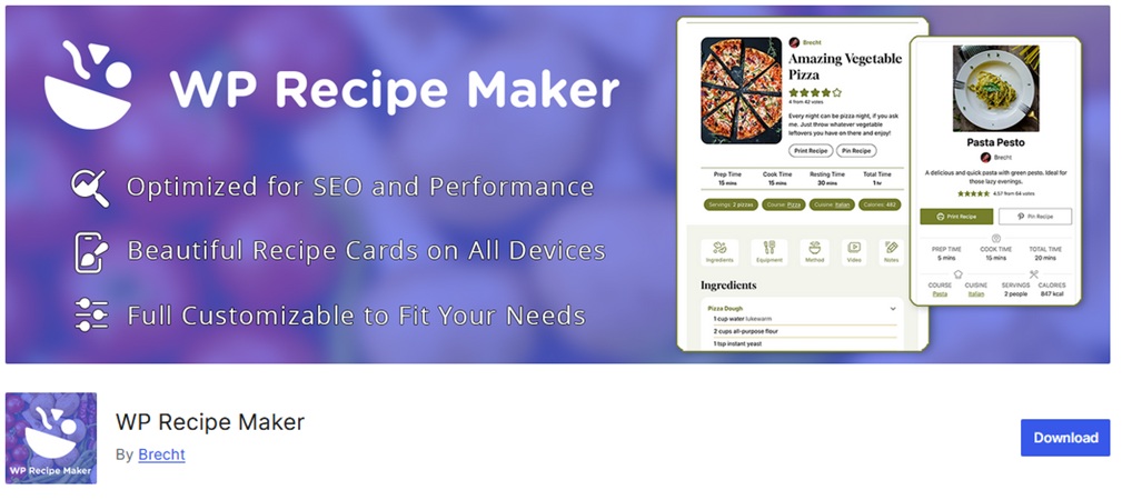 日本ではあまり使われていないかもしれませんが、海外のレシピサイトを見ていると割と使われているプラグインのようで、レシピ系プラグインではおそらく人気第1位です。
