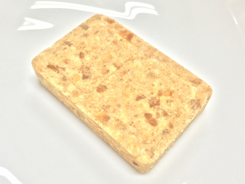 見た目は、他の压缩干粮同様、四角く固められていて薄い茶色ベースに様々な砕かれたものが混ざったような感じでした。