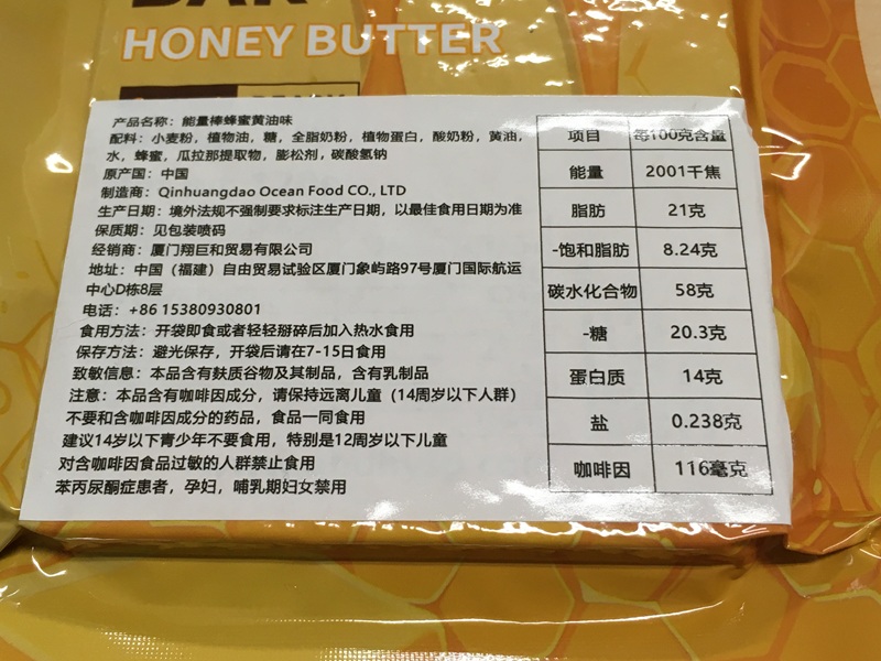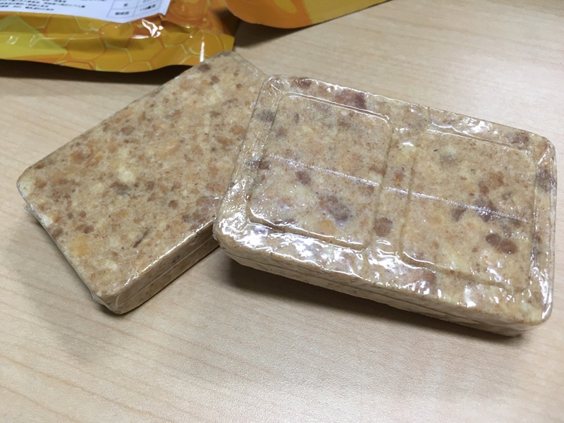 ハニーバター味ですが、少しはちみつっぽい香りがあるかな程度で、あまりはちみつやバター感は感じられず、一般的な「压缩干粮」とあまり変わらない味でした。