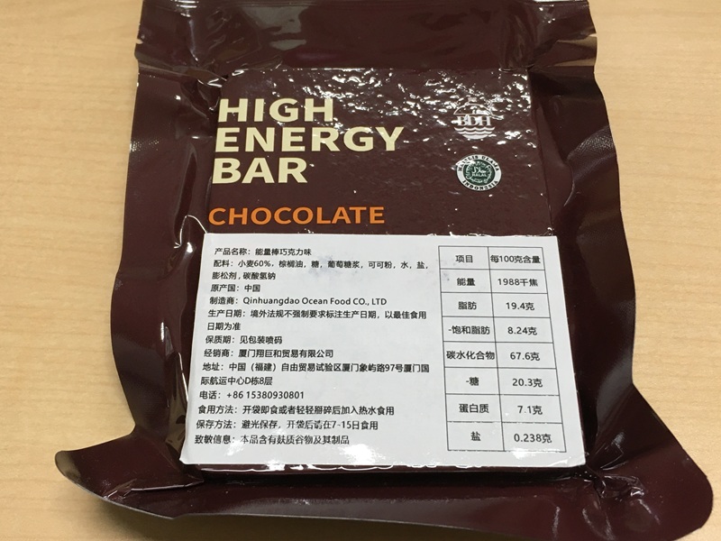 日本でも購入可能な、中国の非常食で海外向けに製造している「BDH High Energy Bar」を購入して食べてみました。