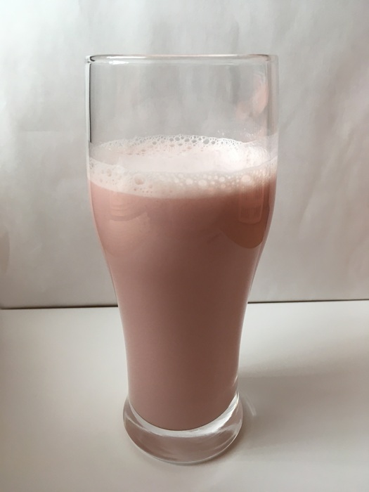 粉を水に溶かすといちごミルクらしい、ピンク色になりました。