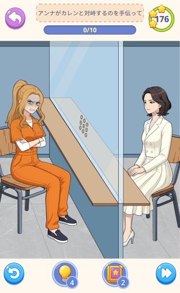 - アンナの右の女性を上にスワイプして真っすぐに立たせる