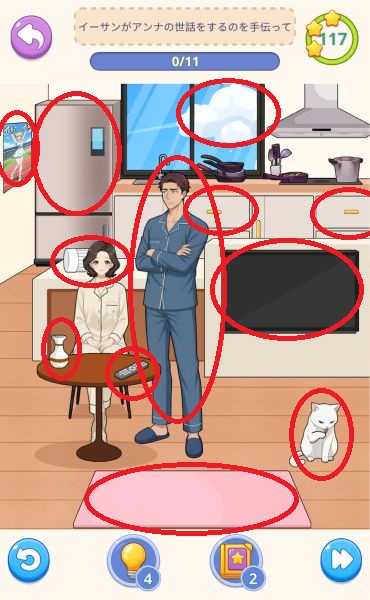 - 窓の外の雲を左にスワイプし、生えてきたひまわりを左のテーブルの花瓶に入れる