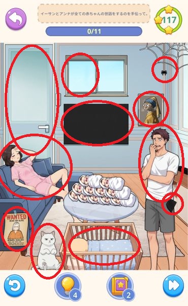 - 左下の茂みを左にスワイプして隠れていたおじいちゃんを出す