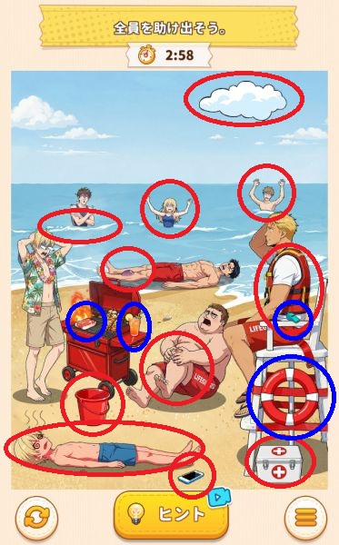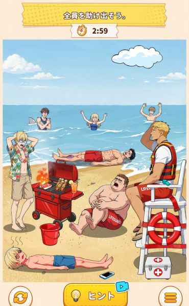 - 下に落ちているスマートフォンを右のライフガードに渡す