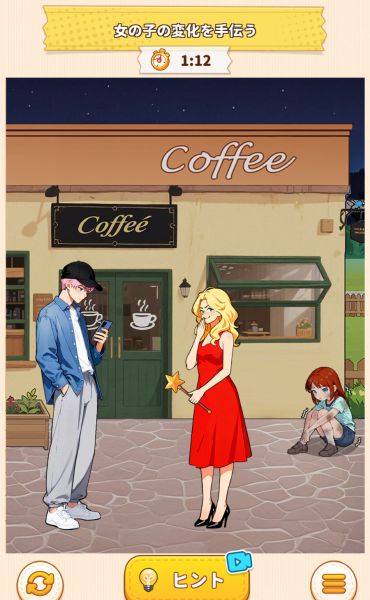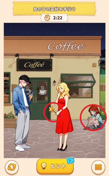 - 工具箱の中の赤いバールを左端の女性の顔に使い、メイクを取る