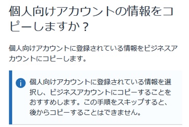 続いて、個人用アカウントの情報をコピーするかどうか聞かれます。