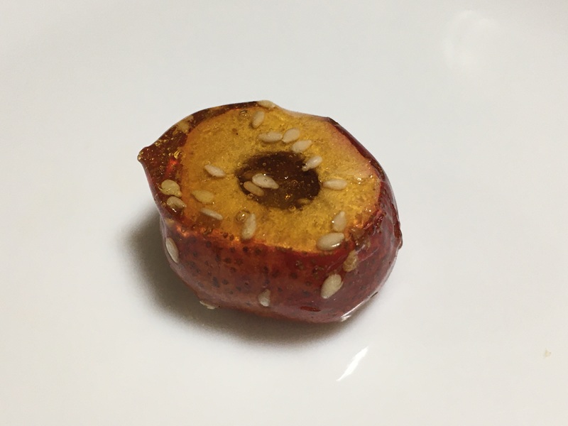 サンザシ自体は柔らかく、りんごのようなシャリシャリ感もないため食感としてはあまり歯ごたえのない、柔らかめの食感です。