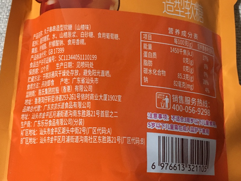 麦芽シロップ、水、サンザシ原液、白砂糖、食用ブドウ糖、ペクチン、クエン酸、クエン酸ナトリウム、食用香料