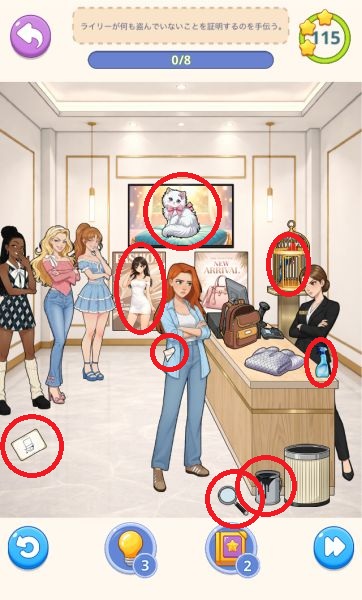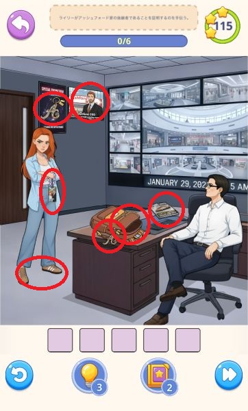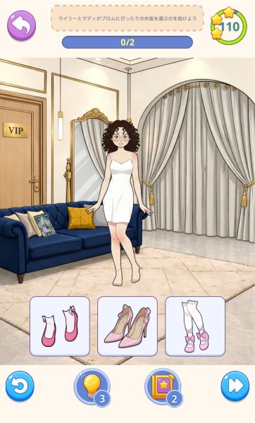 - 机の奥にある靴が描かれた本をタップし、その後ライリーの靴をタップする
