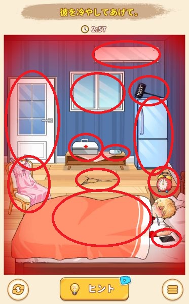 - テーブルの上の救急箱を上にスワイプして開け、中の薬を男性に渡す