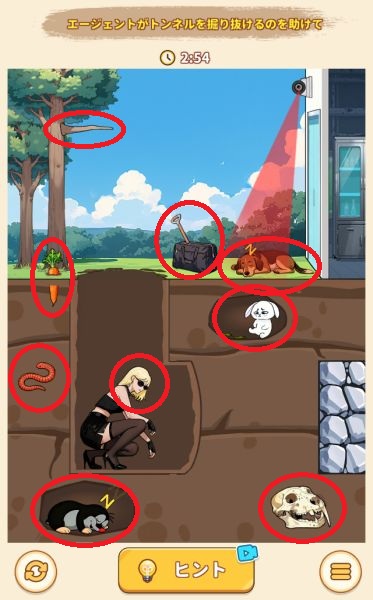 - 穴にいるウサギを左のニンジンに使って掘り出してもらう