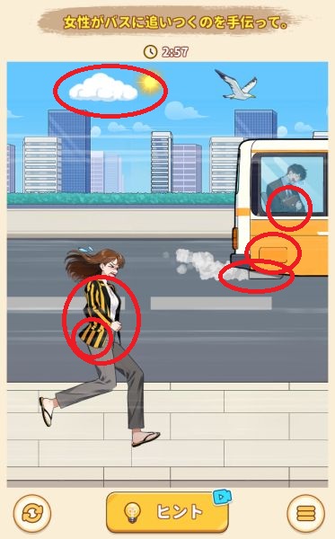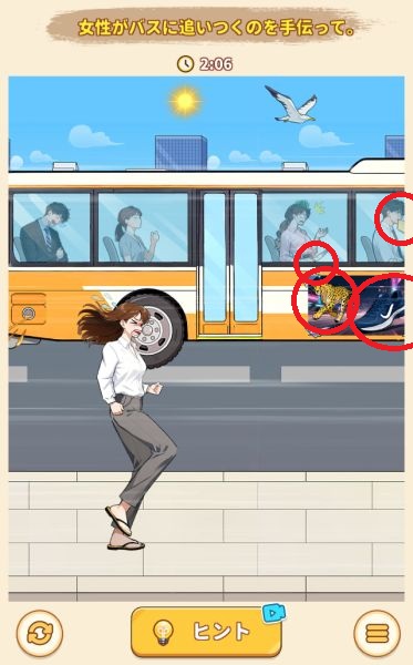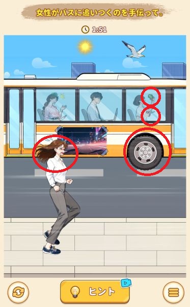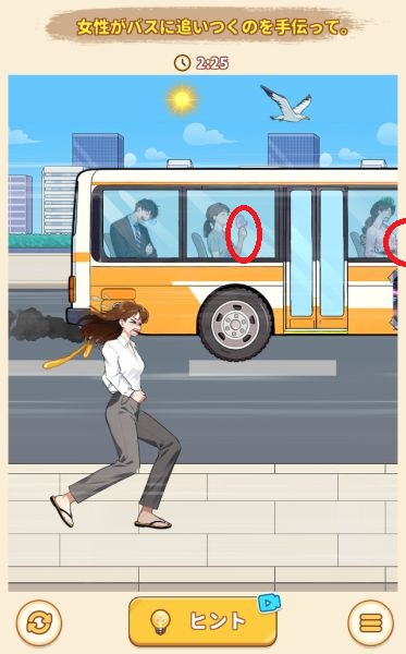 乗り遅れたバスに追いつけるように女性を助けましょう。