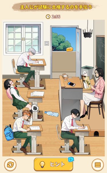 左下の席の男子生徒がテストで合格できるようにカンニングさせましょう。