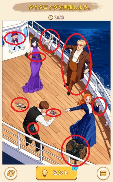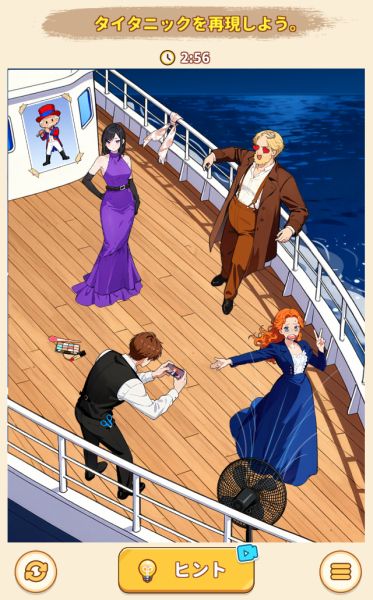 船の上の人たちを何とかしてタイタニックの再現をしましょう。