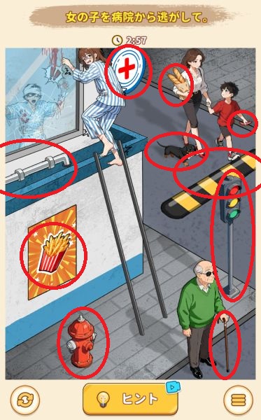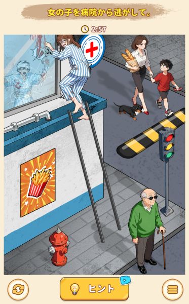 ゾンビのいる病院から女性が脱出できるように足場を作っていきましょう。
