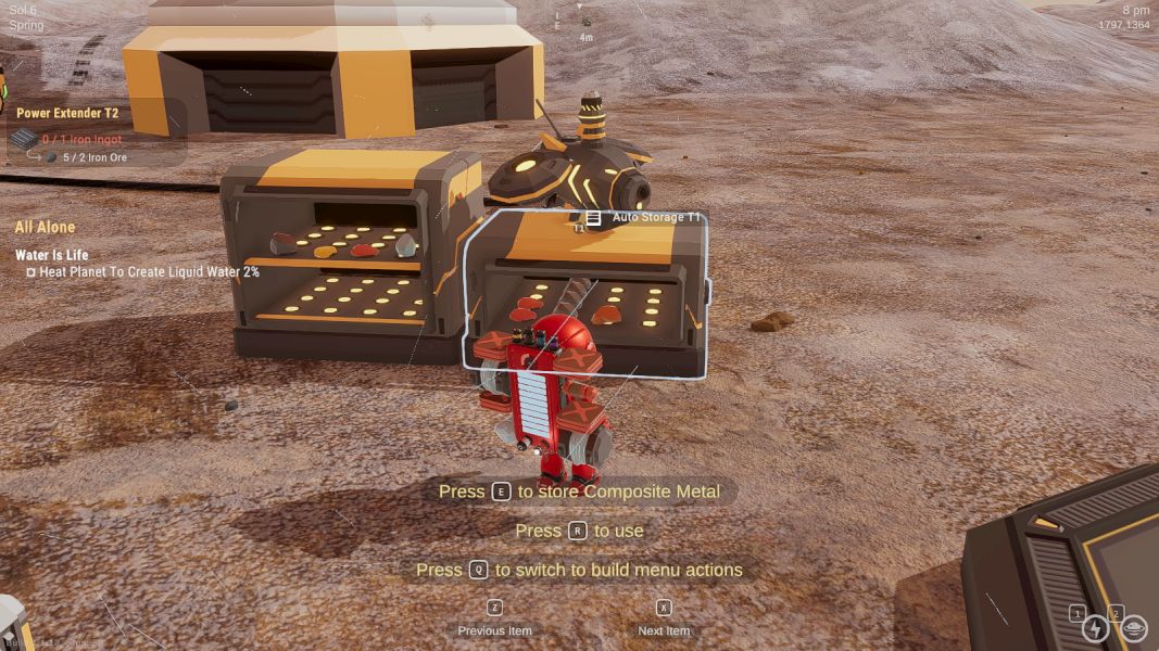 他のテラフォーミング・サバイバル系のゲームとは異なり、主人公はロボットなので、酸素や食事は不要な代わりにバッテリーの充電さえすれば活動できます。