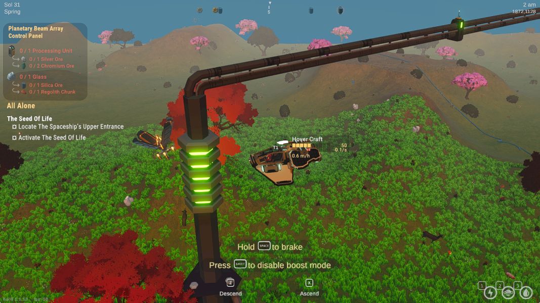 ゲームが進むと乗り物が使えるようになったり、星の環境が大きく変わったりと「The Planet Crafter」といった同系統のテラフォーミング系のゲームにもある、星の変化による達成感も楽しめます。