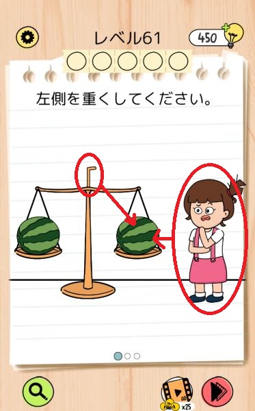 レベル61(左側のスイカを重くする)