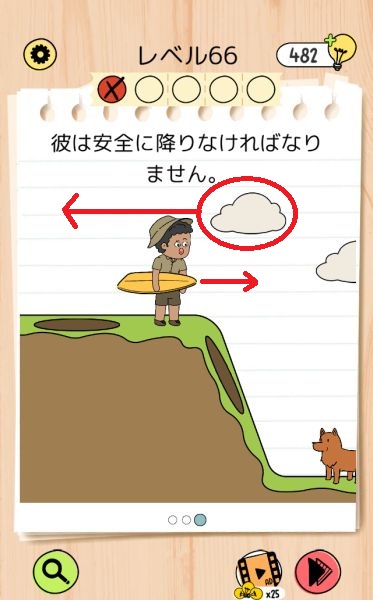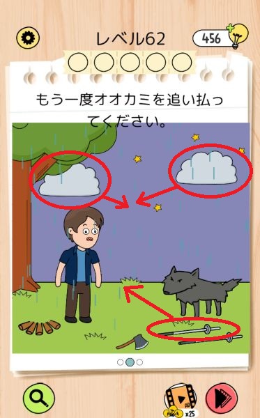 - 雲を左に動かしてタップし、穴に雨を降らせる