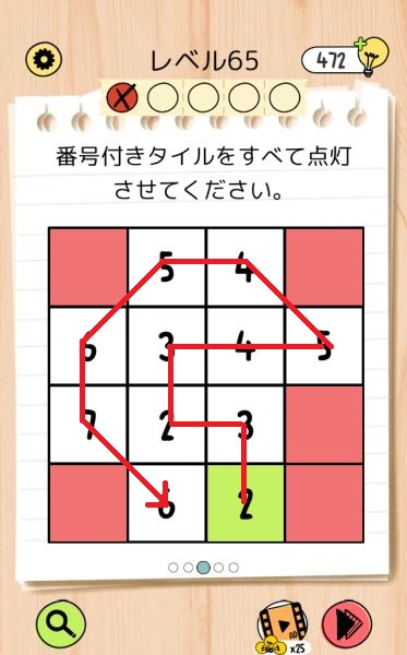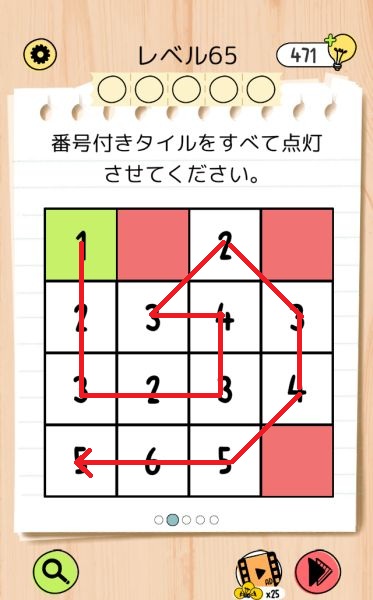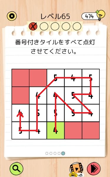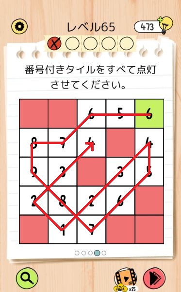 レベル65(数字のタイルを緑色にする)