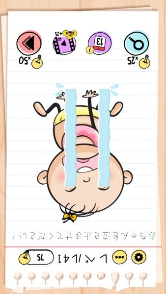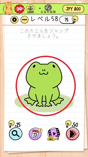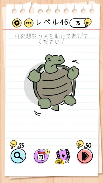 - 横向きの状態で本体を振って倒れたサル(中央)をタップする