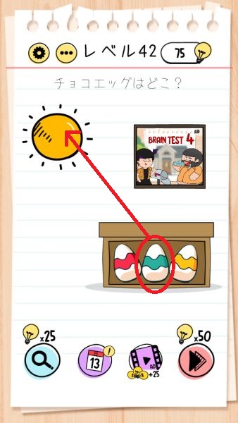 - 右下の青い線が入っている卵を左上の太陽のところに動かして割れるのを待つ