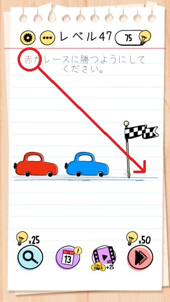 - 右上の観客席に隠れているバッテリーを青い車に使う