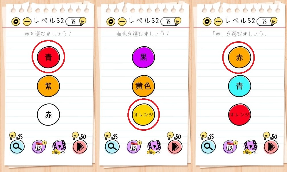 - 「赤」と書かれたオレンジの〇(一番上)をタップする
