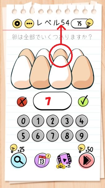 →本物の卵の数は7 - 「7」を入力して緑のチェックをタップする