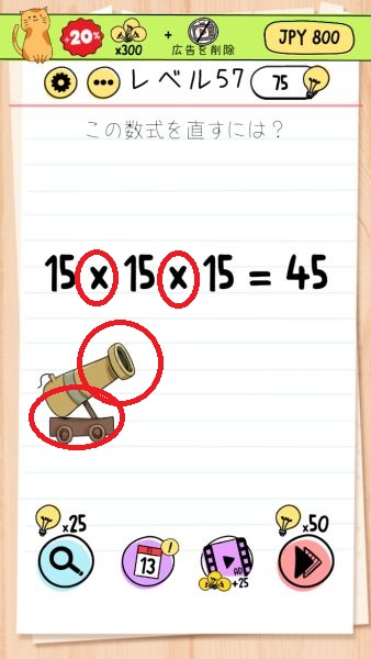 - 大砲の先をタップして向きを2つ目の「x」に向ける