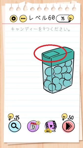 - スマートフォン本体を3回傾けて中身を9粒出す