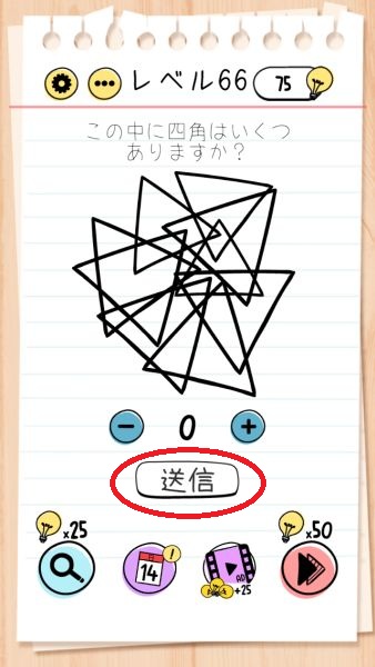 - 三角形しかないので「0」のまま「送信」をタップする