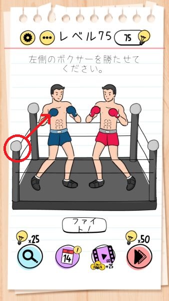 レベル75(左のボクサーを勝たせる)